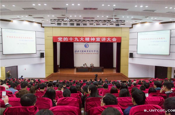10月28日上午,淮安信息职业技术学院召开党的十九大精神宣讲大会。会场座无虚席、气氛热烈。南京师范大学马克思主义学院院长王刚教授应邀作了题为《中国特色社会主义的新航向——学习党的十九大精神》的宣讲报告,大会由该校党委书记裔大陆主持,校领导、全体教职工和学生党员代表出席大会。