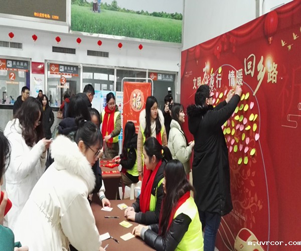 春节前夕,淮安市清江浦区在淮安汽车客运南站开展“文明志愿行、情满回乡路”暖春服务活动,志愿者们向广大旅客提供提行李,文明引导,自助购票等多项服务。在活动现场,旅客将自己的新年愿望写在志愿者提供的彩色卡片上,并粘贴到祝福墙上,就可以领到志愿者提供的春联、中国结和红围巾等礼品,旅客参与度非常高,大家纷纷动手粘贴属于自己的新年心愿,为出行增添一份浓浓的温暖。