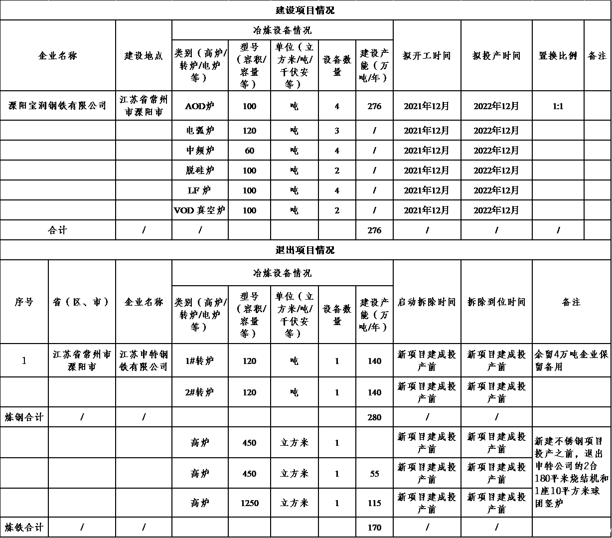 溧阳宝润钢铁不锈钢项目粗钢产能置换方案