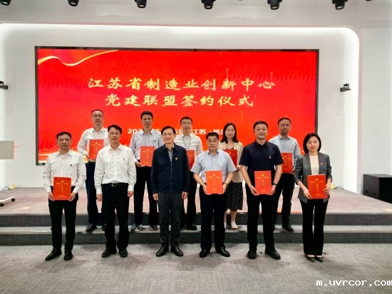 5月16日,江苏省制造业创新中心党建联盟启动仪式在苏州市吴江区举行,省、市、区工信部门4家机关党支部和制造业创新中心5家企业代表签订共建倡议书。